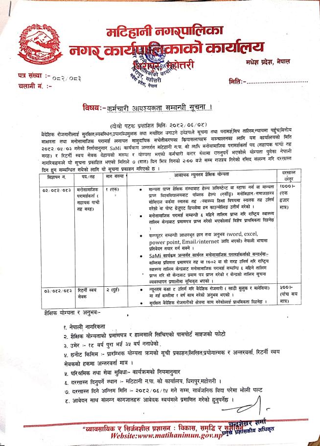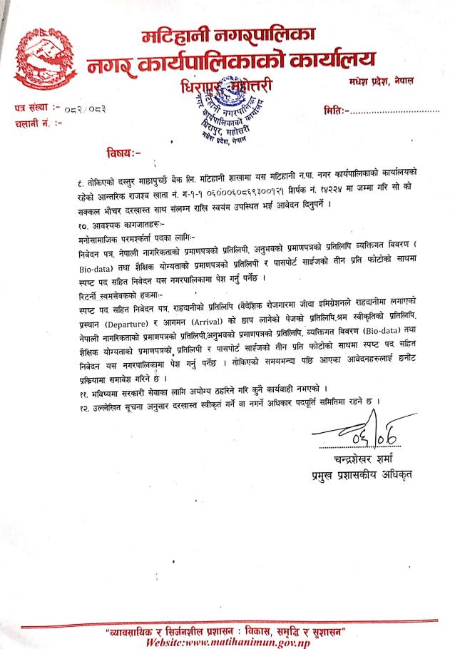 info@matihanimun.gov.np ; ito@matihanimun.gov.np