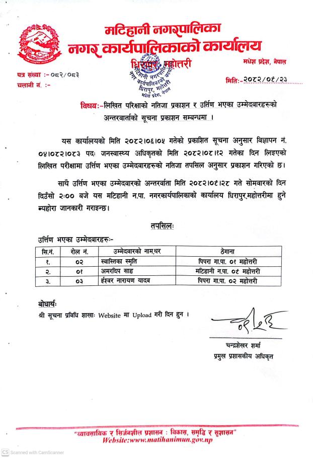 » जनस्वास्थ्य अधिकृतको लिखित परीक्षाको नतिजा प्रकाशन र उतिर्ण भएका उम्मेदवारहरुको अन्तर्वार्ताको सूचना प्रकाशन सम्बन्धमा।